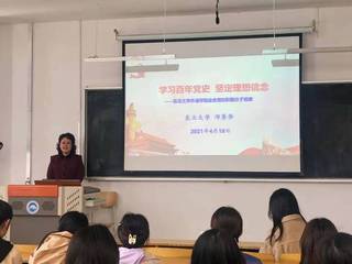4月18日下午,外国语学院党委党校第六期培训班在何世礼教学馆110室举行了专题讲座。本次讲座邀请了原东北大学文法学院中国近现代史研究所所长,现东北大学关工委委员、马克思主义学院关工委常务副主任邱秀华教授,外国语学院党委组织员鄂立华老师出席并主持本次活动。在激昂豪迈的《红旗颂》歌声中,本次讲座拉开帷幕。邱教授为培训班的学员们做了题为“学习百年党史、坚定理想信念”的主题党课。讲座中,邱秀华教授从历史、理论以...