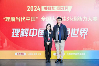12月7日, 2024年“外研社·国才杯”“理解当代中国”全国大学生外语能力大赛俄语国赛决赛暨颁奖典礼在北京外国语大学顺利举行。本届大赛历经校赛、省赛、国赛初赛和决赛四个阶段,29名选手从全国168所院校的3000余名参赛学生中脱颖而出进入决赛。我院俄语系学生在该项赛事的首次参与就取得骄人战绩。由俄语系于家民老师指导的王译曦同学在省赛阶段荣获俄语组金奖并晋级国赛,最终于国赛决赛斩获银奖;李忠翰同学在省赛阶段荣获俄语...
