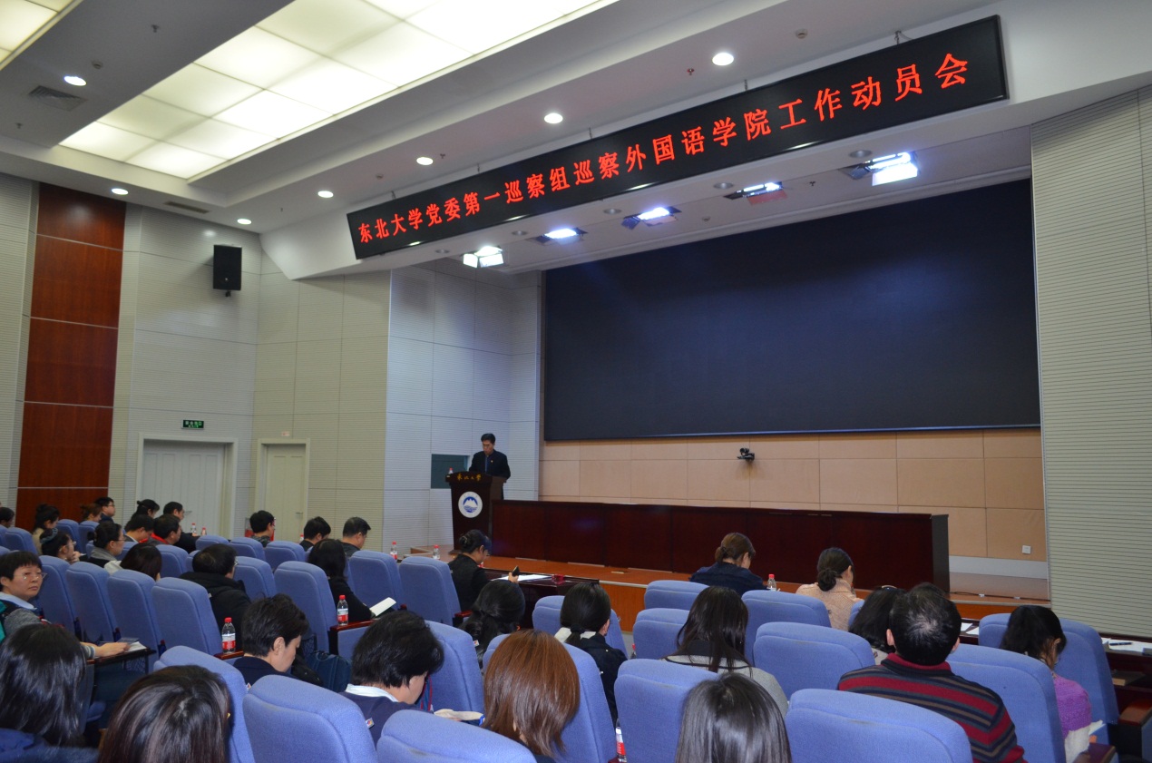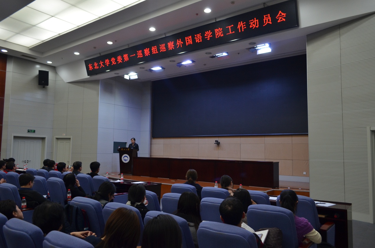 (通讯员 张立夫)12月11日,东北大学党委第一巡察组巡察外国语学院工作动员会在主楼822室召开,校党委副书记、纪委书记、党委巡察工作领导小组副组长杨明,巡察办主任王剑、副主任孙建新,党委第一巡察组组长郝树满及第一巡察组全体成员出席会议。外国语学院领导班子成员、全体教师、学生代表140余人参加了会议。会议由外国语学院院长赵雯主持。