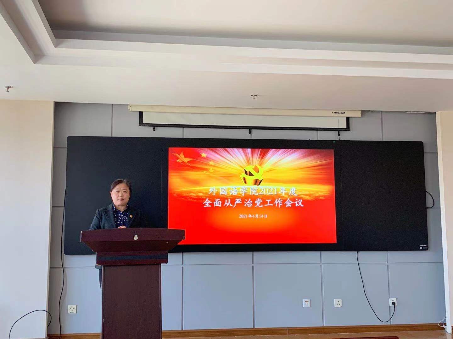4月14日下午,外国语学院党委在综合楼1008召开全面从严治党工作会议,传达学校2021年全面从严治党工作会议精神,并结合学院实际,进行工作落实。外国语学院领导班子成员、党委委员、纪委委员、部门负责人、教职工党支部书记、学生党支部书记代表以及机关全体参加会议。会议由党委书记赵彩清主持。