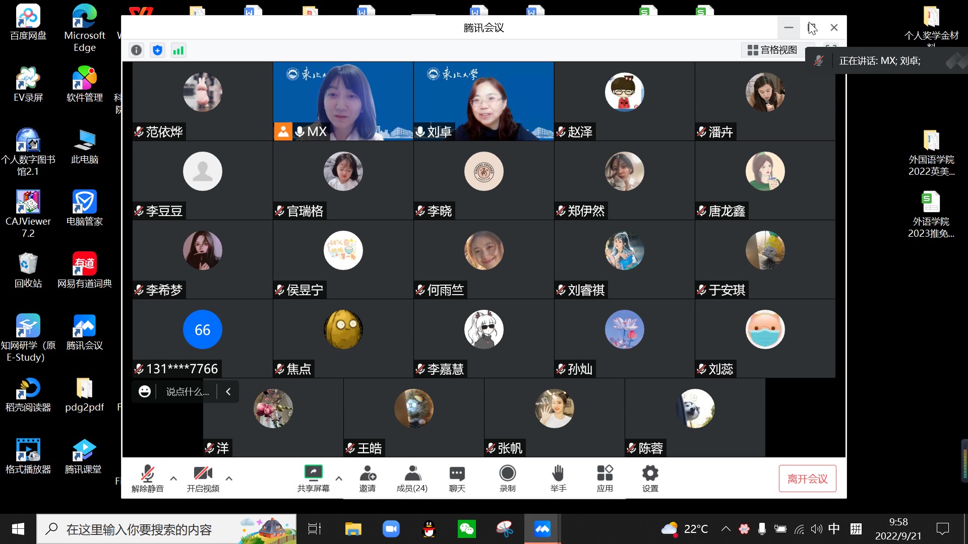 2022年9月21日上午,外国语学院迎100周年校庆系列学术讲座通过腾讯会议平台在线上成功举办。讲座是本年度英语语言文学学科的第五讲,由欧美文学研究所所长刘卓教授主持,外国语学院副教授、硕士生导师马新应邀做了题为“英美文学研究的范式转变与发展趋势”的学术报告,吸引了相关学科师生30余人前来聆听。