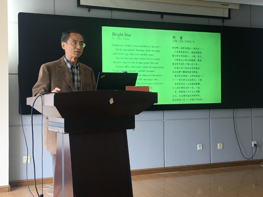 2023年5月5日下午,中国社会科学院外国文学研究所研究员兼博士生导师、中国作家协会会员傅浩教授应邀到访我院,以“威廉·卡洛斯·威廉斯的实验诗”为题,在综合楼1008室做了一场精彩的学术讲座。 本次活动是庆祝东北大学建校100周年系列学术讲座之一,由英语系冯溢副教授主持,外国语学院副院长王勃然教授、英语系副主任杨林副教授及学院教师和本科生、研究生出席了本次讲座。