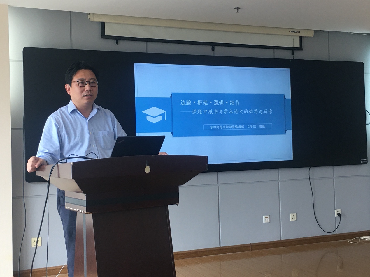 2023年5月20日下午,华中师范大学学报副主编、编审,华中师范大学文学院硕士生导师曾巍教授应邀到访我院,以“选题·框架·逻辑·细节:课题申报书与学术论文的构思与写作”为题,在综合楼1008室做了一场精彩的学术讲座。本次活动是庆祝东北大学建校100周年“文学研究与科研水平提升”系列学术讲座之一,由英语系冯溢副教授主持,外国语学院副院长王勃然教授及学院教师和本科生、研究生出席了本次讲座。