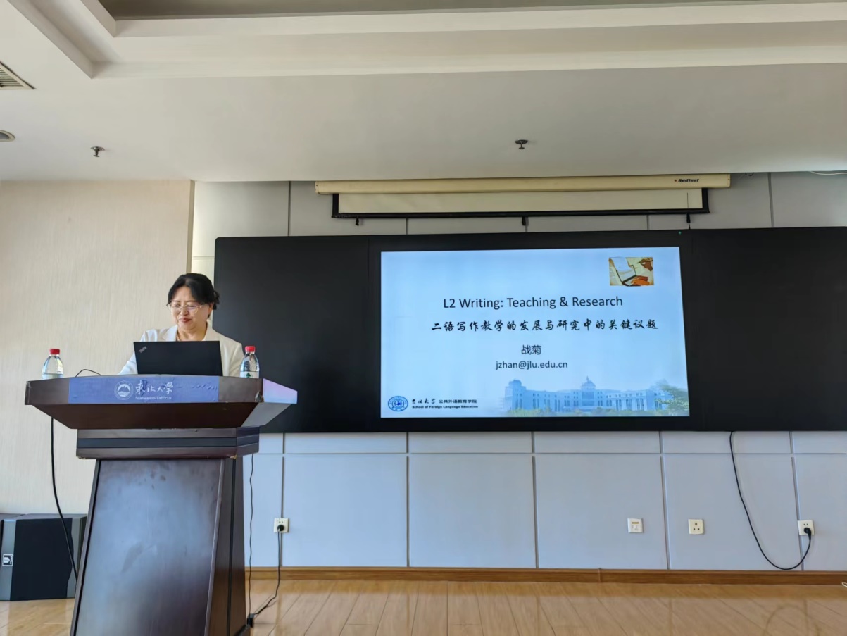 23号下午,吉林大学战菊教授概述了60年来国内外二语写作教学的缘起、发展和主要教学方法的特征,重点分析了二语写作研究中的关键议题,包括文本研究、写作过程研究、语境研究和读者研究等。山东大学杨港教授从外语教学研究整体认识与把握、外语教学定量、定性、混合研究与数据分析等层面展开,以国家社科基金一般项目“‘互联网+’时代大学英语教学模式研究”中不同类型的数据为例,呈现外语教学研究中获取、处理、报告、解释数据的过程,总结数据多样化对教学实证研究的促进作用。