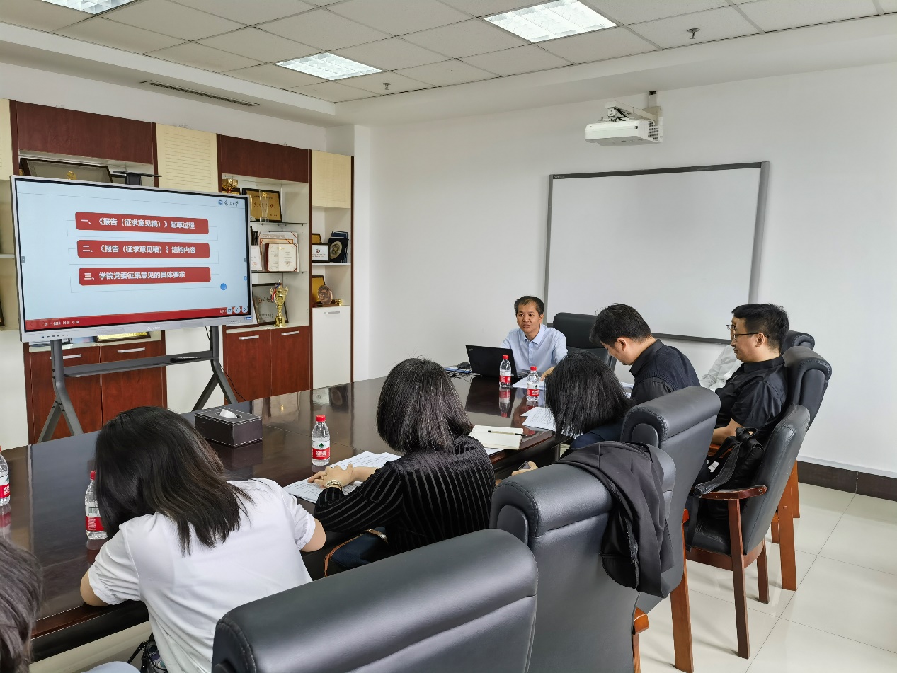 外国语学院党委第一时间响应学校号召,6月6日—7日,学院党委书记张满胜主持召开两场座谈会,在学院干部师生党员、党支部书记、学科带头人、高层次人才、老中青教职工代表等群体中征求意见建议。