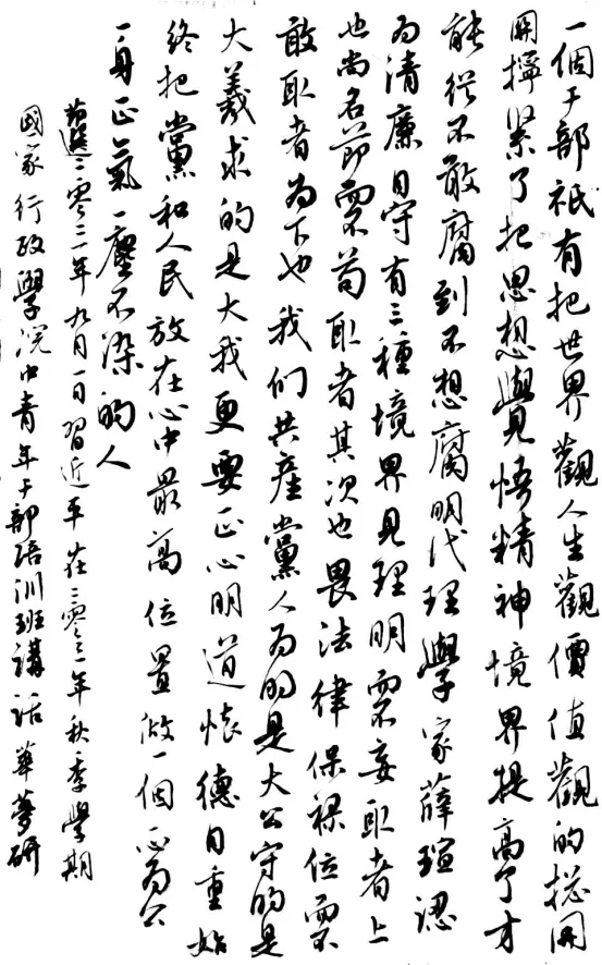 创作理念:本作品为《七律·清廉》(节选)的硬笔书法,充分地体现了作者即使身在淤泥之中依旧两袖清风的廉洁理念。作为共产主义的接班人,我们应当接过时代的接力棒,让廉洁在我们的时代里继续熠熠生辉、焕发光彩。