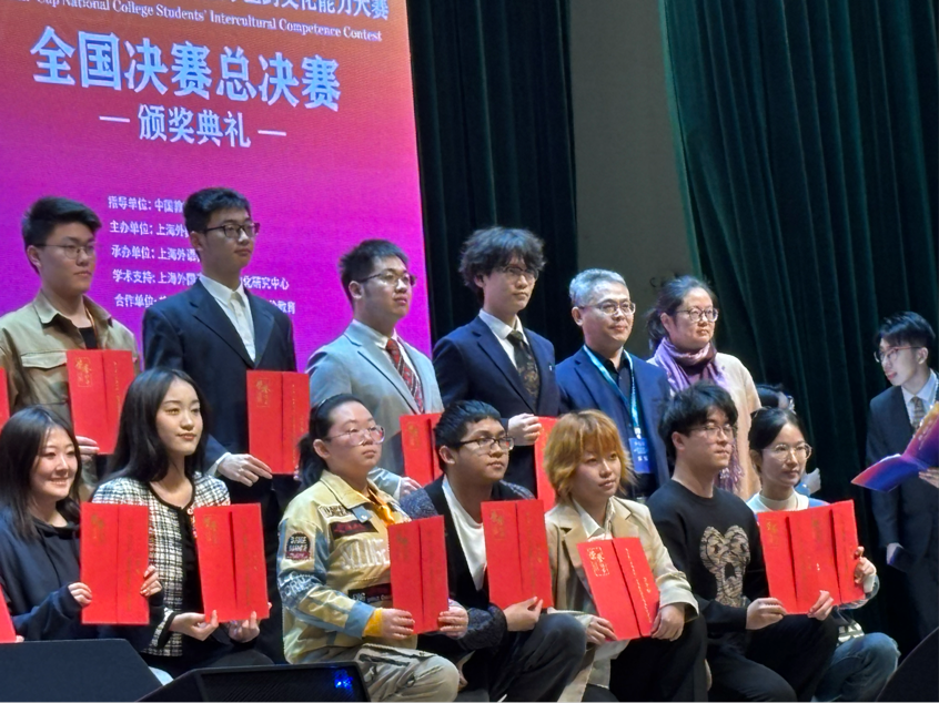 12月1日下午,第七届“外教社杯”全国高校学生跨文化能力大赛全国决赛、总决赛颁奖典礼在上海外国语大学虹口校区举办。在指导老师冯溢、杨林、王淑芳、外籍教师Nathan的带领下,我校外国语学院胡轶涵、材料科学与工程学院李畋佚和崔荣蟠,荣获全国二等奖。