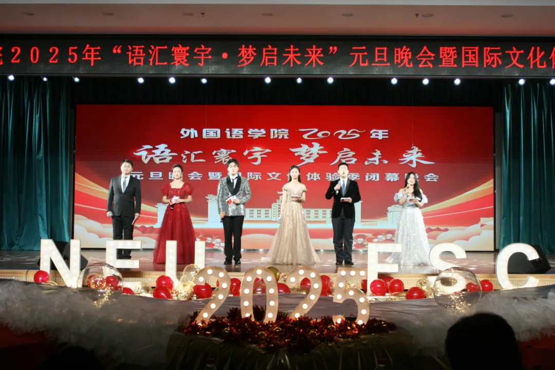 12 15 日晚,东北大学外国语学院 2025 年“语汇寰宇,梦启未来”元旦晚会暨国际文化体验季闭幕晚会在学生活动中心多功能厅举行。党委宣传部常务副部长闫研,公安处处长张迪,国际教育学院院长于福晓,学生指导服务中心副主任石昌远,学生工作处副处长韩磊,团委副书记刘锃一,外国语学院院长张威,外国语学院党委副书记、纪委书记韩忠军,外国语学院副院长李宗鹏,外国语学院副院长国蕊,外国语学院副院长何鑫,外国语学院党委副书记、副院长严志刚应邀出席晚会,外国语学院全体师生积极参加活动。