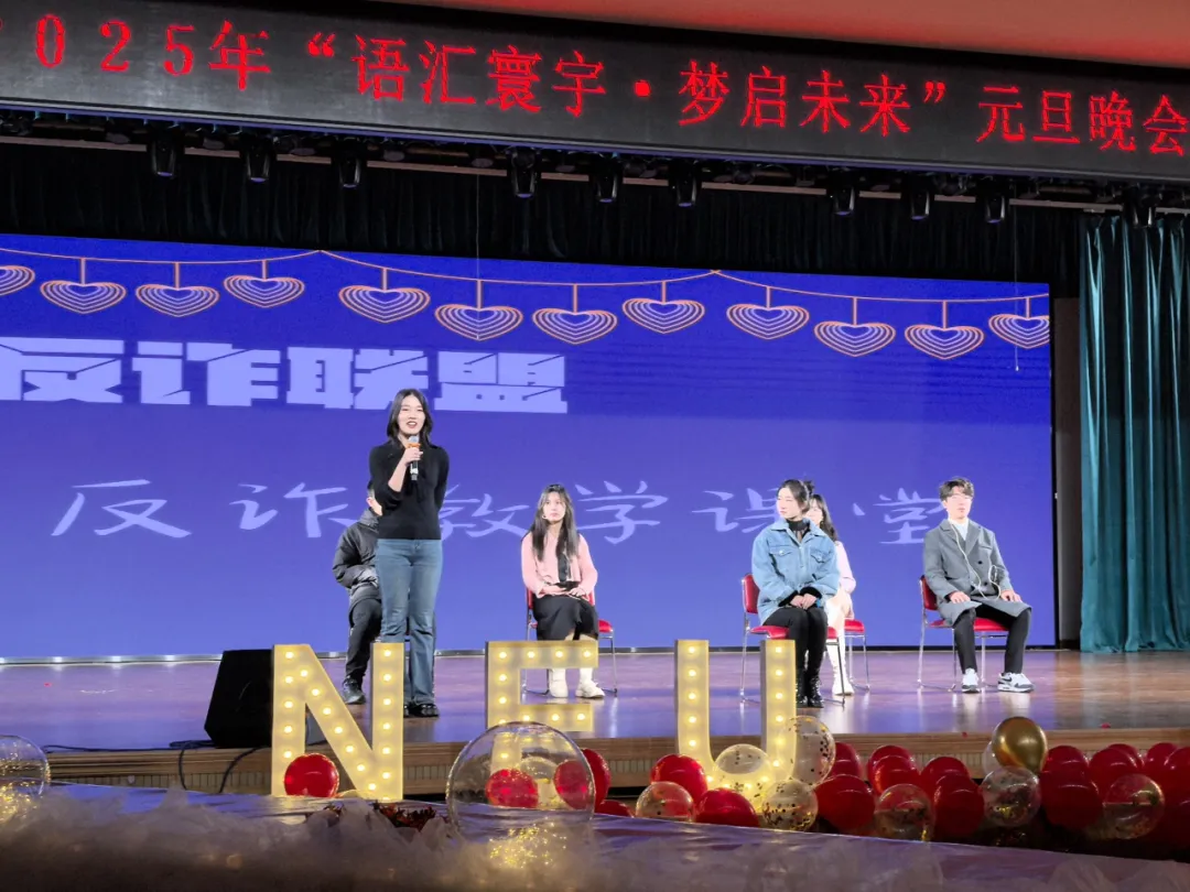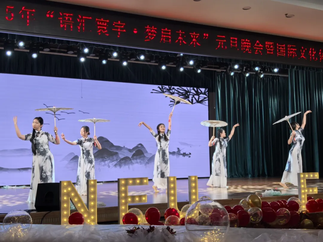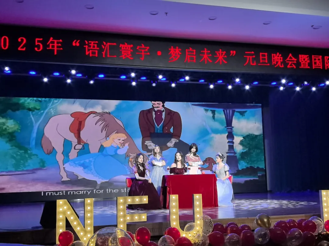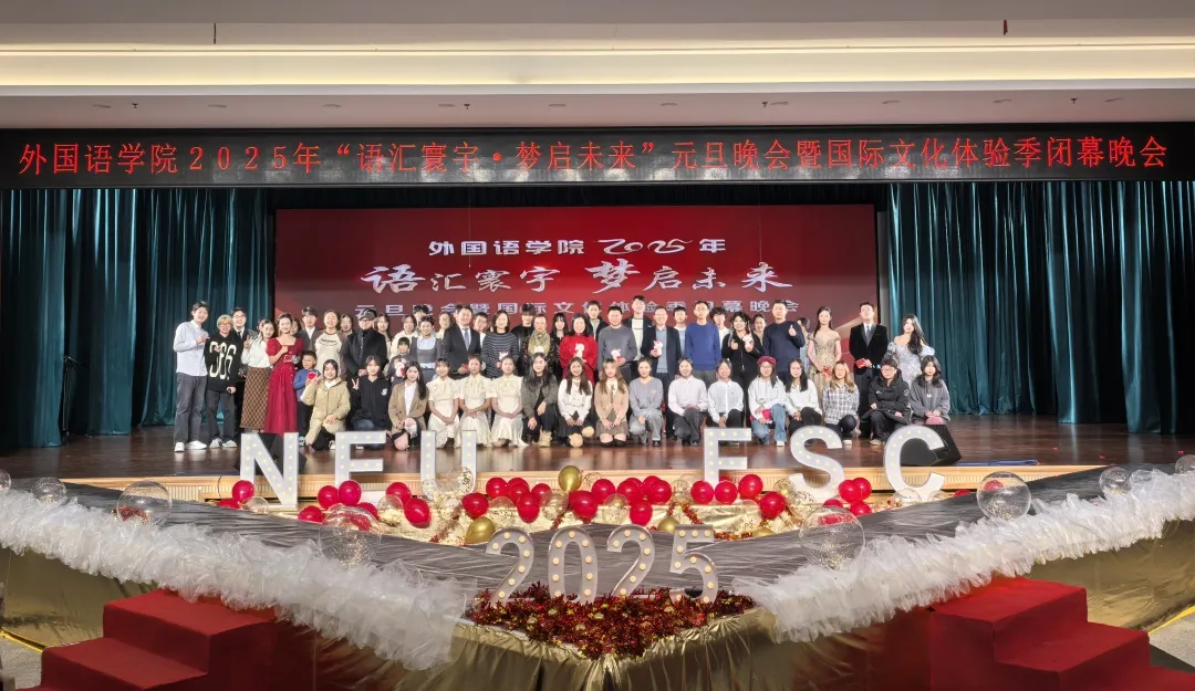 12 月 15 日晚,东北大学外国语学院 2025 年“语汇寰宇,梦启未来”元旦晚会暨国际文化体验季闭幕晚会在学生活动中心多功能厅举行。党委宣传部常务副部长闫研,公安处处长张迪,国际教育学院院长于福晓,学生指导服务中心副主任石昌远,学生工作处副处长韩磊,团委副书记刘锃一,外国语学院院长张威,外国语学院党委副书记、纪委书记韩忠军,外国语学院副院长李宗鹏,外国语学院副院长国蕊,外国语学院副院长何鑫,外国语学院党委副书记、副院长严志刚应邀出席晚会,外国语学院全体师生积极参加活动。