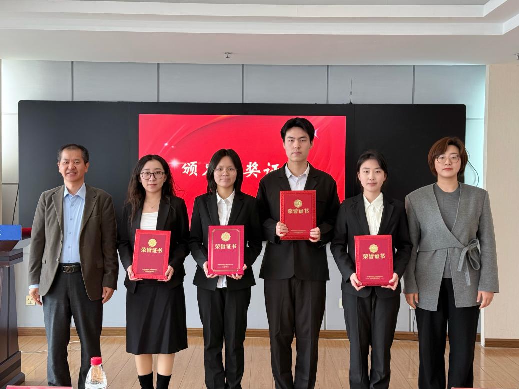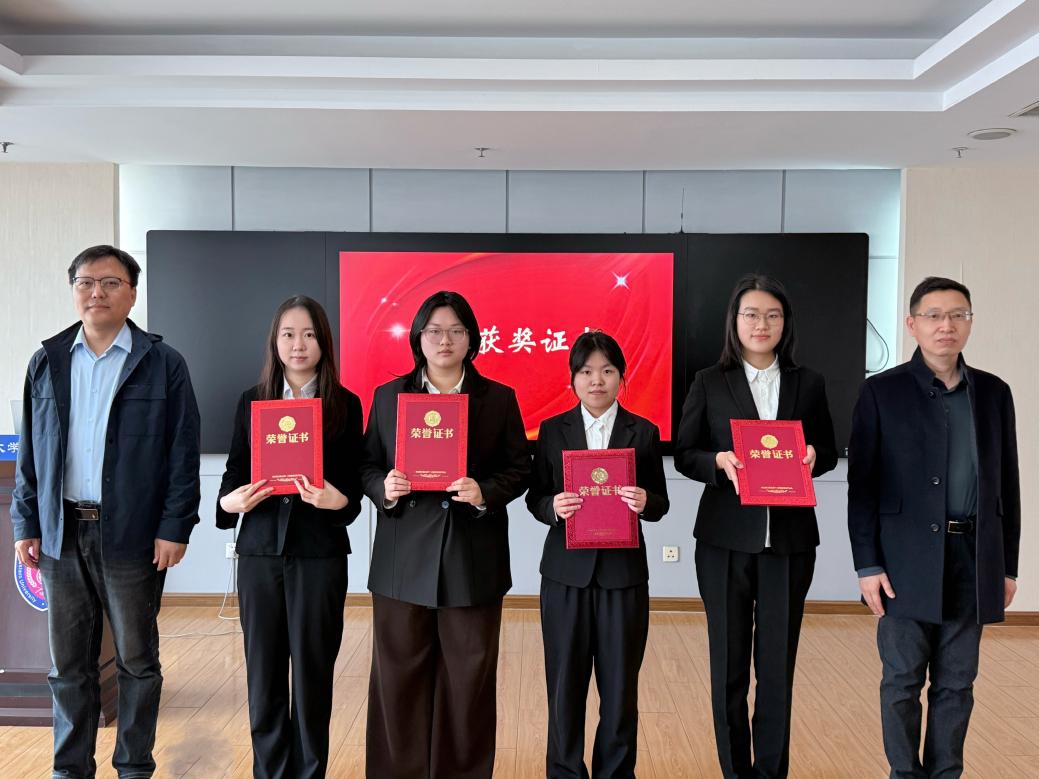 会上,严志刚宣读了获奖名单。刁彤、张满胜、展成、严志刚共同为获奖学生颁奖。