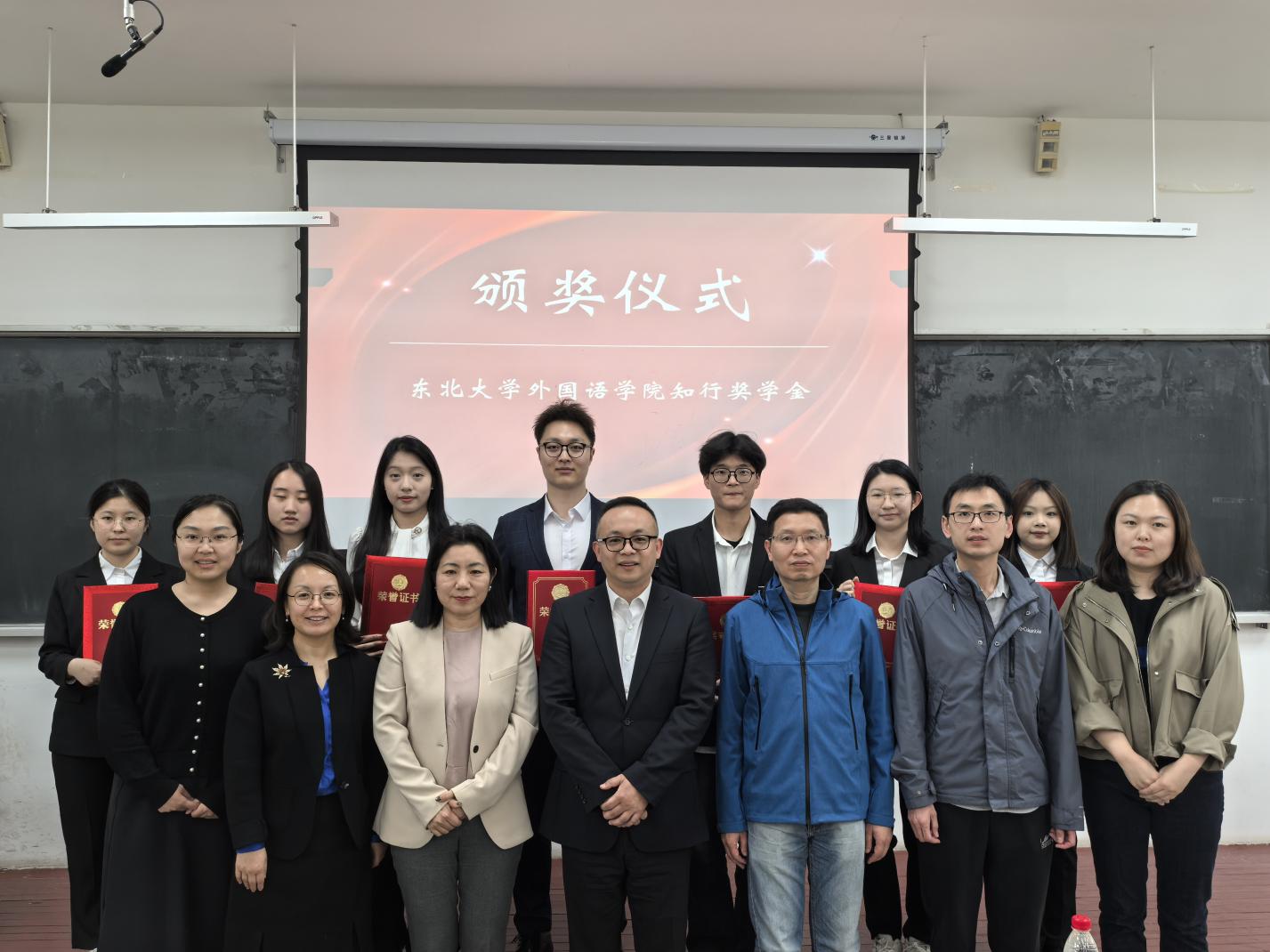 2025年4月23日,东北大学外国语学院2023-2024年度知行奖学金颁奖仪式暨青年·成功讲坛在何世礼教学馆举行。海尔国际副总裁孙永乐、海恒慧教育总经理赵建平、外国语学院院长张威、张学良教育基金会办公室副主任展成、外国语学院党委副书记、副院长(兼)严志刚出席。活动由外国语学院团委书记高歌主持。