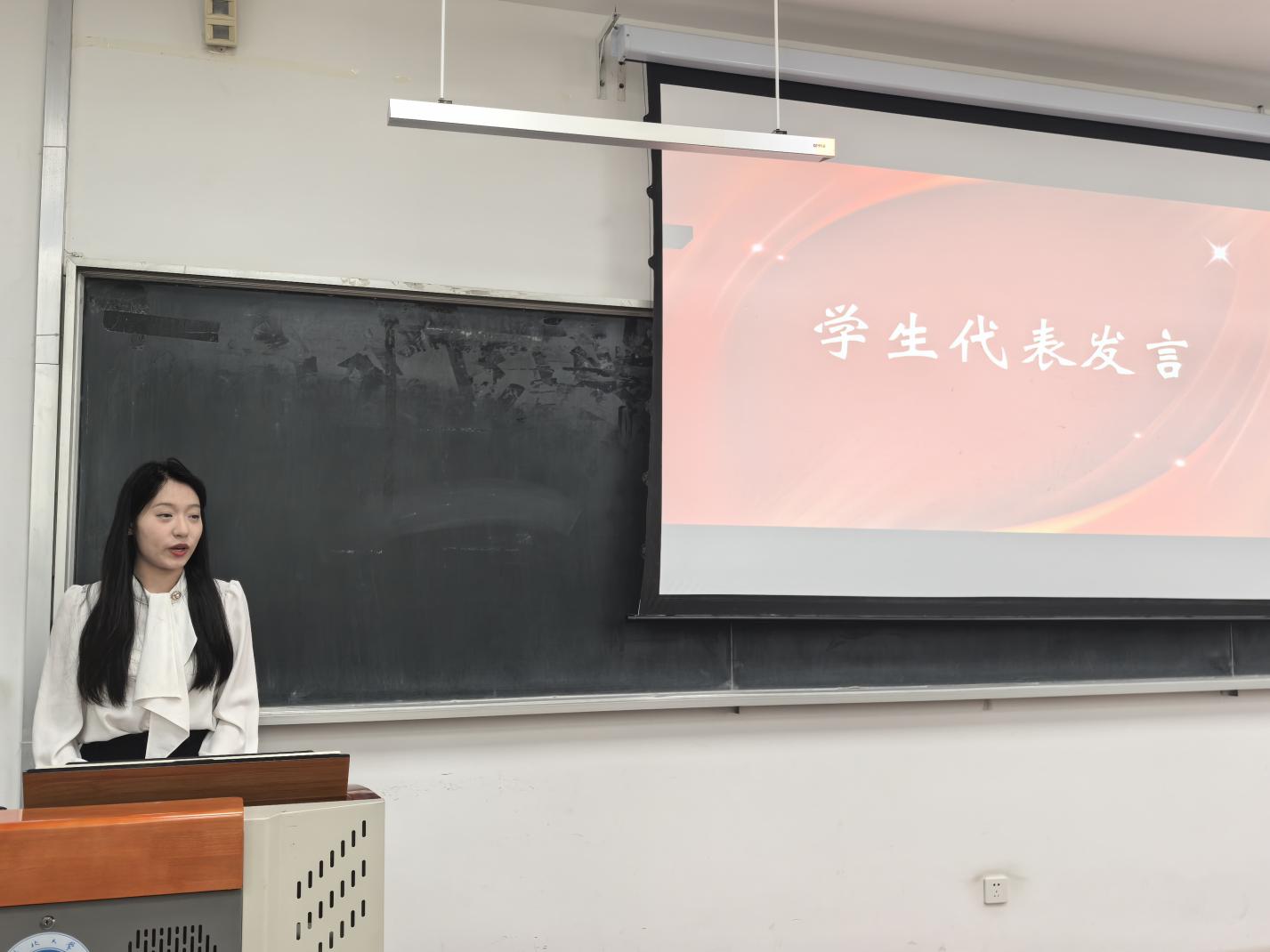 学生代表刘嫒佳代表全体获奖学生发言。她衷心感谢孙永乐校友的慷慨支持和无私奉献。表示这份荣誉不仅是对学生努力学习、锐意进取的认可,更是对学生坚定信念、砥砺奋进的鼓励。在未来,她将继续“讲好中国故事,传播中国声音”,做一个对国家、民族有用的外语人才,回报母校和学院给予的关爱。