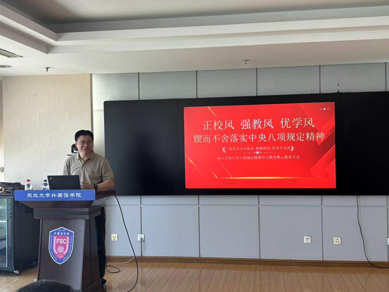 韩忠军还结合2024年度高校系统典型违纪违法案例进行了警示教育,剖析原因,警示全体教职工引以为戒,不断增强纪律意识和规矩意识,时刻警惕“四风”问题,坚决守住廉洁自律底线。他要求全体党员扎实开展学习教育,将作风建设深度融入学校中心工作,以优良作风凝聚力量,以实际行动推动学校在人才培养、学科建设等各方面实现高质量发展。