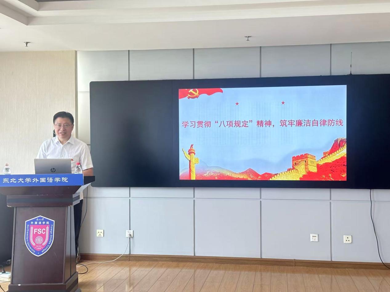 5月27日中午,外国语学院在综合楼1008室举办廉洁教育讲座,学院党委副书记、纪委书记韩忠军老师做了题为《学习贯彻中央八项规定精神,筑牢廉洁自律防线》的专题讲座,学院全体学生党员参与本次活动。此次讲座隶属于《FAITH信仰计划》之“Theory理论夯实”板块。