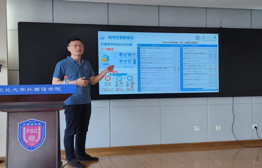 孙贺围绕高考改革新变化、责任省份招录情况、学院生源情况及2025年度招生宣传工作做了重点介绍,系统梳理了学校2025年招生宣传工作的整体进程和重点难点,并针对本年度政策要点和常见问题开展培训交流,为学院招生组教师答疑解惑。