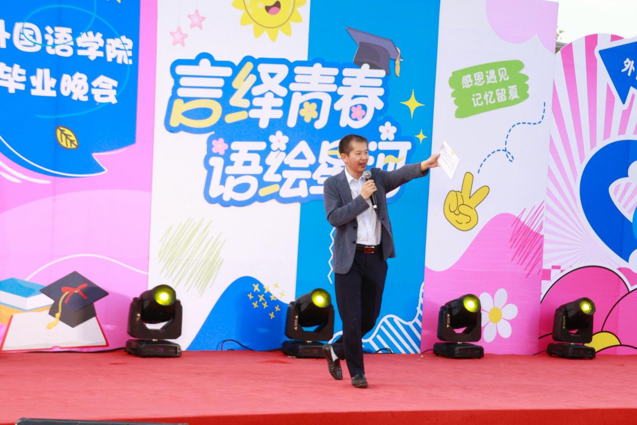 6月11日晚,外国语学院“言绎青春 语绘星河”2025届毕业生晚会在五五体育场顺利举行。外国语学院院长张威,党委书记张满胜,党委副书记兼副院长严志刚及学院各系部、各办公室相关老师出席晚会。