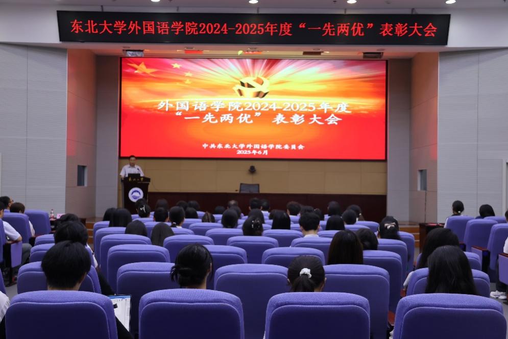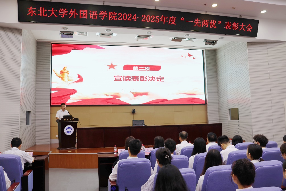为庆祝中国共产党成立104周年,表彰在学院发展中作出突出贡献的先进集体与个人,6月30日,外国语学院隆重召开2024-2025年度“一先两优”表彰大会。东北大学党委常委、组织部部长张玉宝出席会议,学院领导班子成员、党委委员及全体师生党员共同参会。会议由学院党委副书记、副院长严志刚主持。