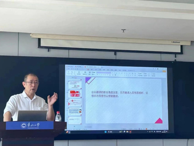 5月21日,东北大学外国语学院语言服务中心邀请原辽宁省人民政府外事办公室亚洲处处长、日语笔译方向校外导师、资深外事翻译专家李向荣老师以“外事工作翻译要领”为题,为外国语学院日语系教师及研究生进行了关于外事工作中相关翻译要领的精彩讲解。