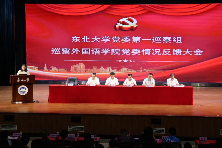 7月9日下午,东北大学党委第一巡察组巡察外国语学院党委情况反馈大会在汉卿会堂蔡冠深报告厅召开。校党委副书记、党委巡察工作领导小组副组长张皓,校党委常委、组织部部长、党委巡察工作领导小组成员张玉宝,党委第一巡察组组长、文法学院党委书记隋永强,校纪委副书记、党委巡察办主任、党委巡察工作领导小组成员王剑,校纪委副书记、纪委办主任、党委巡察工作领导小组成员赵志超,巡察组、巡察办、纪委办和组织部相关同志出席会议。外国语学院领导班子成员、教职工代表以及学生代表130余人参加会议。会议由外国语学院院长张威主持。