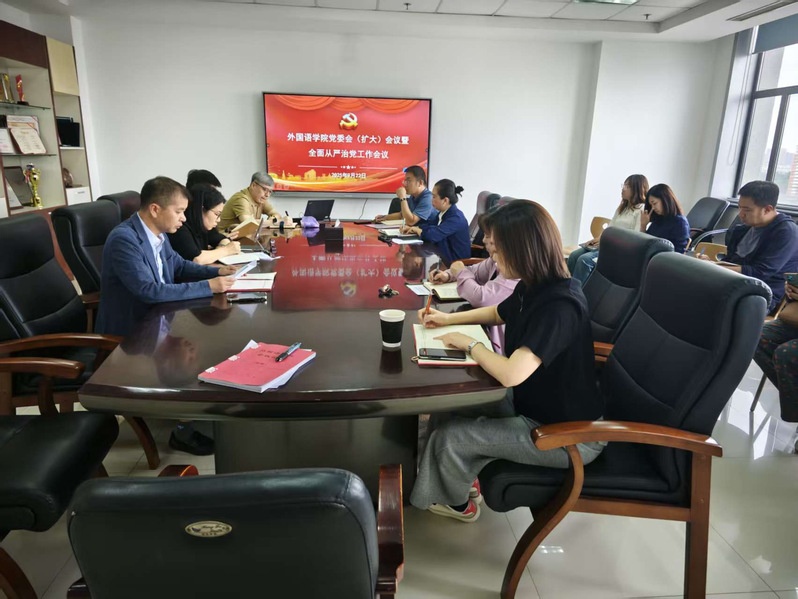 9月16日,外国语学院党委(扩大)会议暨全面从严治党工作会议在主楼1004室召开,传达学习9月16日东北大学党的建设和全面从严治党工作领导小组(扩大)会议精神,全面总结学院深入贯彻中央八项规定精神学习教育(以下简称“学习教育”)的做法和成效,研究部署巩固拓展学习教育成果、推进作风建设常态化长效化工作。学院领导班子成员,党委委员,纪委委员,系部、部门主任,支部书记、党务秘书参加会议。会议由学院党委书记张满胜主持。