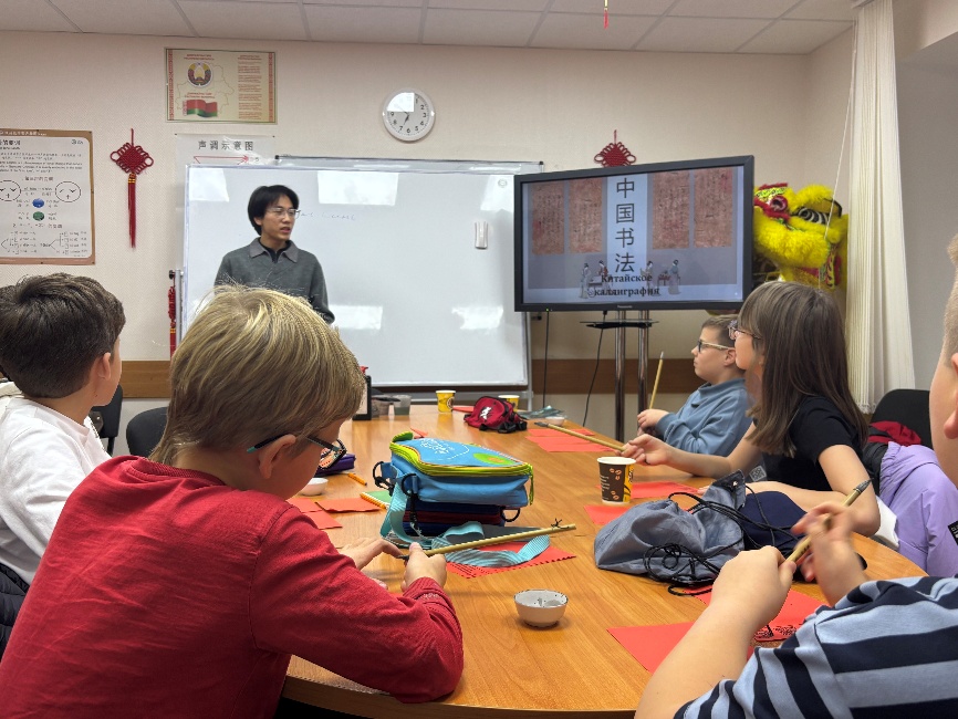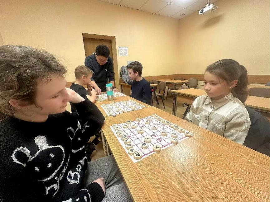 围绕“线上线下融合传播中华优秀文化”主题,俄语系学生走进汉语课堂开展沉浸式文化主题展示与互动式教学,茶艺、书法、剪纸、象棋、泥塑与纸编龙舟等生动多彩的文化内容和富有创意的教学方式,引发白俄罗斯学生浓厚兴趣与热烈互动,彰显外院俄语系学子跨文化表达与传播能力。