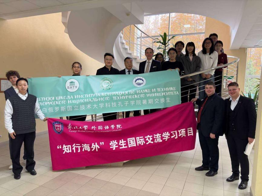 为深入贯彻国家推动高水平教育对外开放战略部署,落实东北大学加快建设世界一流大学的总体目标,不断提升人才培养质量,拓展学生国际视野,增强国际交流能力。2025年10月16日至27日,东北大学外国语学院俄语系副主任于家民率“知行海外”学生国际交流学习项目团组赴白俄罗斯明斯克,开展为期十二天的学术访问与文化交流。本次行程以“深化中白教育合作,促进科技人文融合,提升学生全球胜任力”为核心任务,得到了东北大学国际处及外国语学院的大力支持,为推动中白两国青年互学互鉴与校际务实合作注入了新动力。