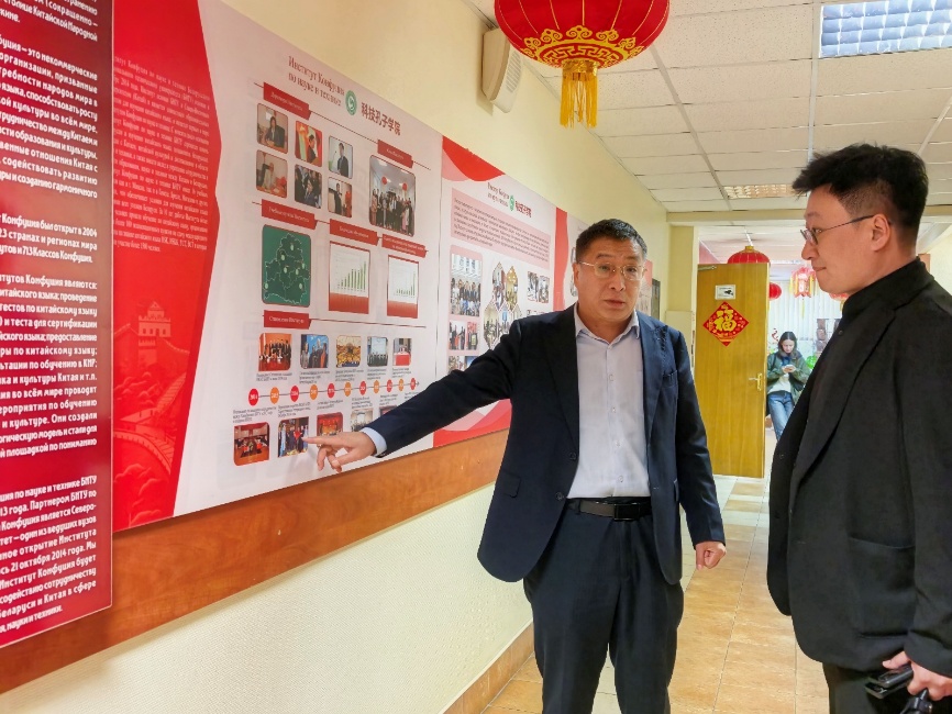 期间团组重点调研白俄罗斯国立技术大学科技孔子学院,并与该院开展多维互动与深度研讨。中方院长李文学介绍了科技孔子学院在“中文+工程技术”教育模式、科技中文课程体系建设及中白科技文化交流机制等方面的创新成果,为复合型人才培养提供了前沿模板。