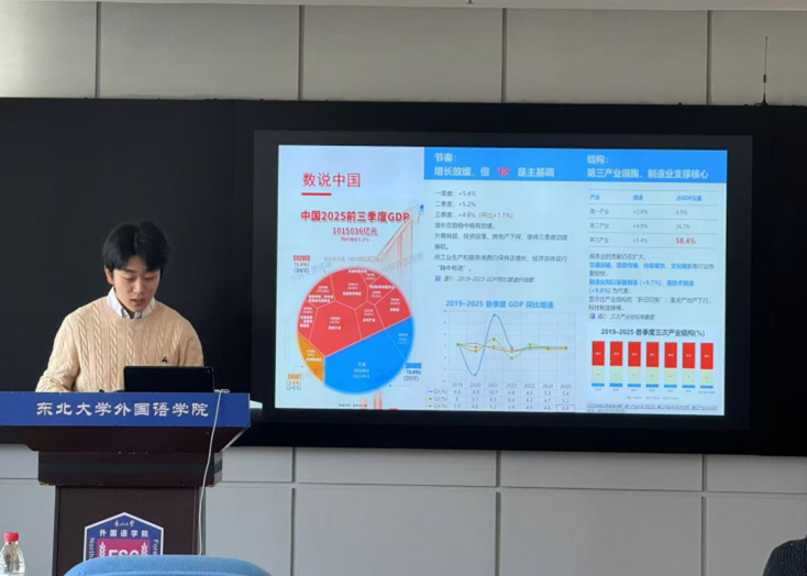 随后,支部结合全会公报中“现代化产业体系”“实体经济”等表述,开展“数说中国”活动。结合2025年前三季度中国GDP发展数据,感悟国家经济发展之迅速。