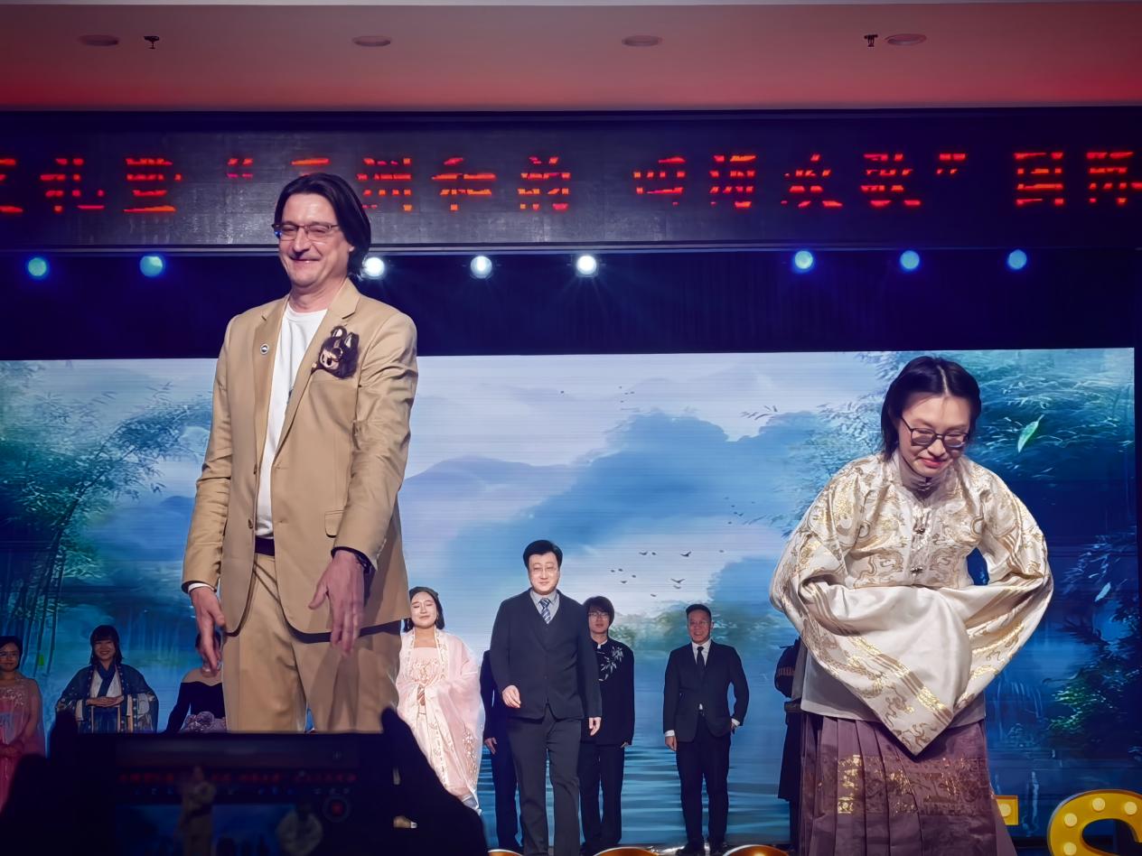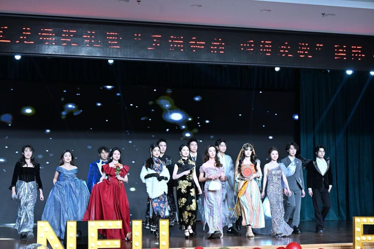 晚会大幕初启,外国语学院师生的华服走秀率先登场。华彩缀于衣袂,五洲风情融于步态,一场跨越文化的视觉盛宴,恰似骐骥驰骋四海,每一步都踏响青春的韵律,引人沉醉其间,奔赴新程。