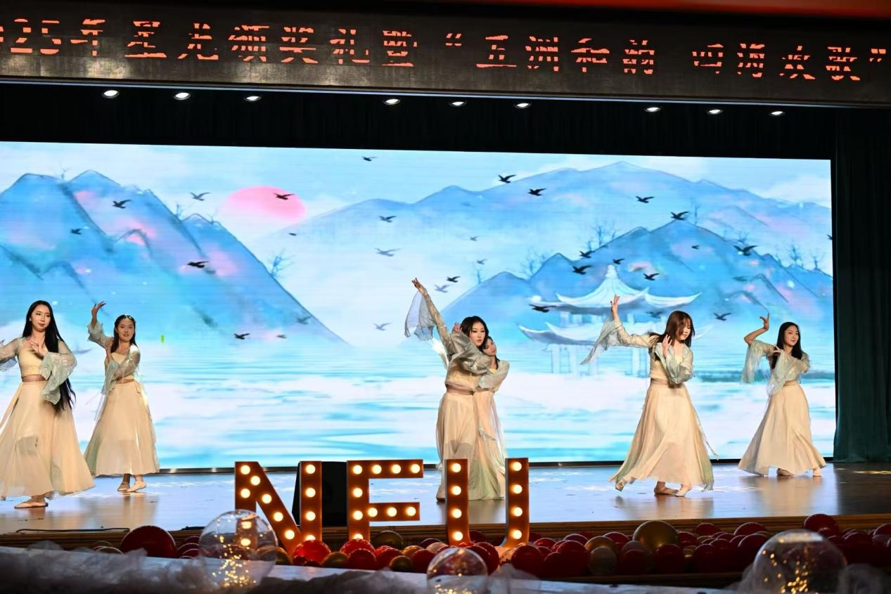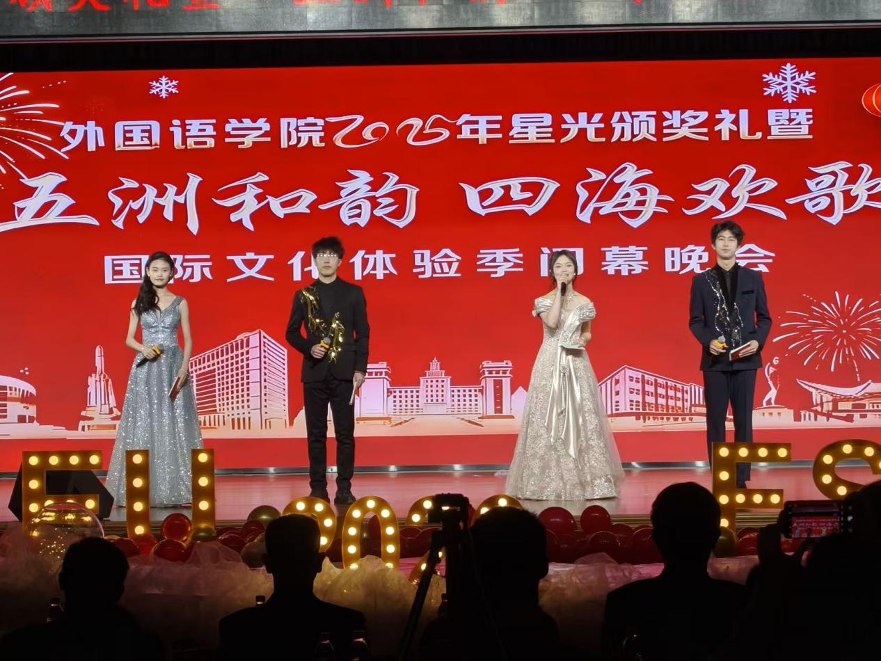 12月21日晚,东北大学外国语学院2025年星光颁奖礼暨“五洲和韵,四海欢歌”国际文化体验季闭幕晚会在学生活动中心多功能厅举行。