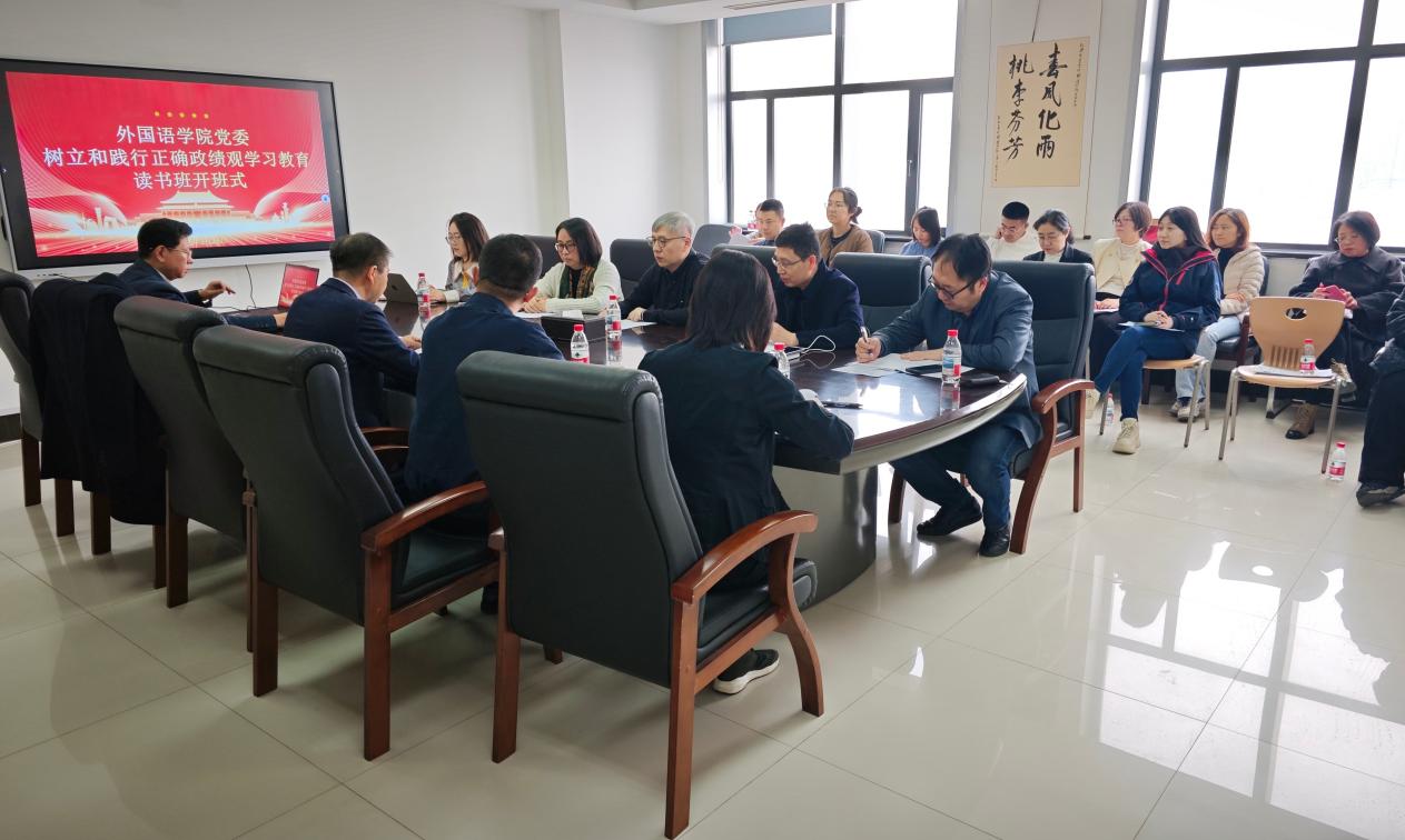 为深入贯彻学校党委关于树立和践行正确政绩观学习教育的统一部署,强化全院党员干部理论武装,筑牢思想根基,以正确政绩观引领学院高质量发展,3月26日,外国语学院党委在主楼1004室举行树立和践行正确政绩观学习教育读书班开班式暨专家辅导报告会。会议由学院党委书记张满胜主持,学院领导班子成员、党委委员、纪委委员、科级干部、教职工党支部书记参会。