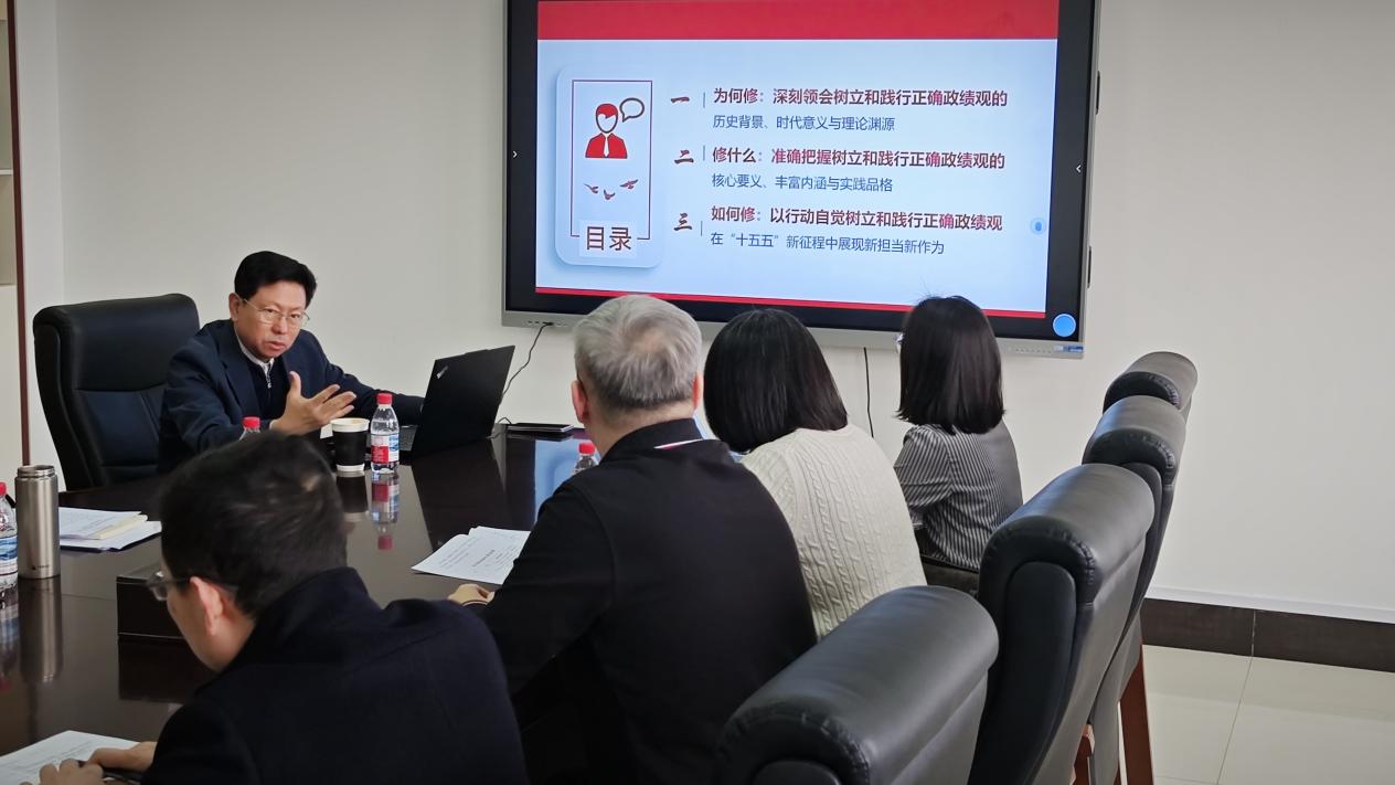 此次专家辅导报告会特别邀请东北大学树立和践行正确政绩观学习教育宣讲团成员、东亚研究院院长、马克思主义学院孙雷教授,作题为《修身为本 政绩乃成——从传统文化视角谈筑牢正确政绩观的根基》的专题辅导报告。报告从传统文化视角切入,深刻解读正确政绩观的核心内涵,阐释筑牢正确政绩观根基的路径方法,精准指出纠治政绩观偏差的重点要点,兼具理论高度、实践深度与现实指导意义,为全院党员干部树立和践行正确政绩观提供了重要启发与思路指引。